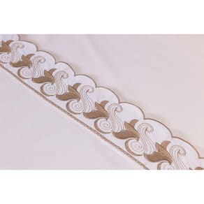 Jogo lençol 4 peças cama viúva percal 200 fios bordado palha com caqui