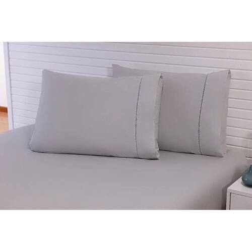 Jogo lençol 4 peças cama viúva percal 200 fios cinza