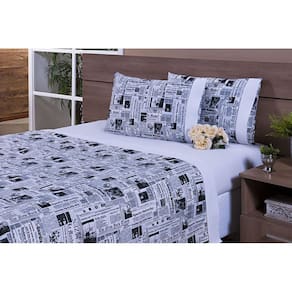 Jogo Lençol 4 Peças Cama Viúva1,88MX1,28M Percal Jornal - Branco