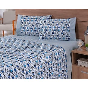 THAIS ENXOVAIS JOGO DE LENÇOL 4 PEÇAS CAMA CASAL PADRÃO 1,88 X 1,38 X 0,35 100% ALGODÃO 200 FIOS COM PONTO PALITO 01 Lençol de Cima Estampado 2,60m x 2,20m01 Lençol de baixo com elástico ao redor de todo o lençol para melhor fixação no colchão(não fica saindo da cama)Para colchão 1,88m X 1,38m X 35cm 02 Fronhas 70cm x 50cmComposição: Tecido 100% Algodão 200 FIOS Marca: THAIS ENXOVAIS