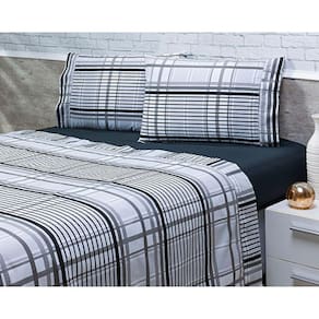 Jogo Lençol 4 Peças Casal Padrão 1,88mx1,38mx35cm 100% Algodão 200 Fios Ponto Palito Preta Listrado - Única