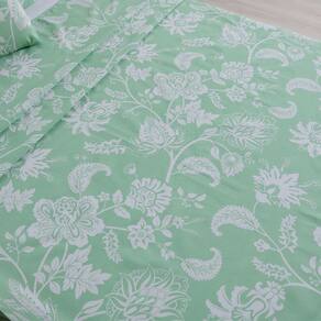 Jogo de Lençol 4 Peças CASAL Percal 180 Fios Home Style Jade Verde Conheça nossa linha de jogos de lençol com estampas exclusivas Home Style. Jogo de lençol 4 peças tamanho casal percal 180 Fios Home Style Jade verde é um jogo de cama versátil e prático composto por um lençol de cima verde estampado com desenhos florais em branco com acabamento de bainha em toda volta, um lençol branco liso com elástico em toda volta e duas fronhas verdes estampadas com desenho branco e fechamento modelo envelope. Todas as peças são fabricadas com tecido percal 180 fios que possui a composição mista de 60% de algodão e 40% poliéster. O tecido possui qualidade garantida e não desbota nem forma bolinhas além de um toque macio mesmo após várias lavagens.