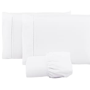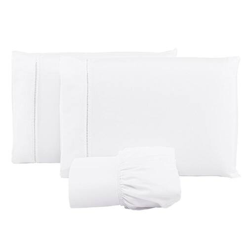 Marca: Enxovais Davy | Estampa: Não se Aplica | Medidas: 2 fronhas com ponto palito Tamanho: 0,50m x 70cm1 Lençol de baixo com elástico 2,05m x 2,50m x 30cm | Número de Peças: 03 Peças | Material: Poliéster | Cama Indicada: Casal