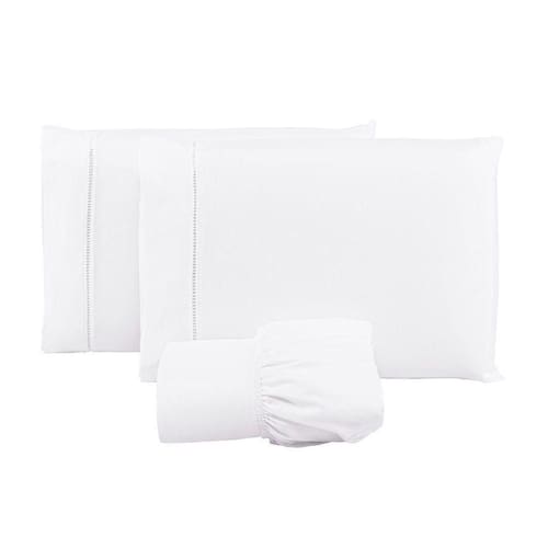 Jogo Lençol 400 Fios Ponto Palito Cama Solteiro 2pçs Poliéster - Branco - Única