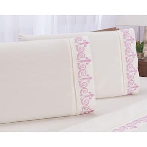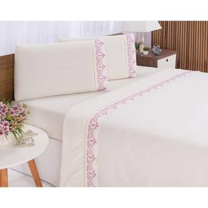 Jogo lençol Atenas quarto casal padrão bordado 4 peças 2fronha - Rosê