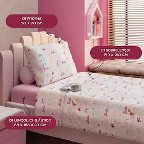 - O Jogo Lençol Barbie é confeccionado em 100% algodão, garantindo um toque macio e suave.