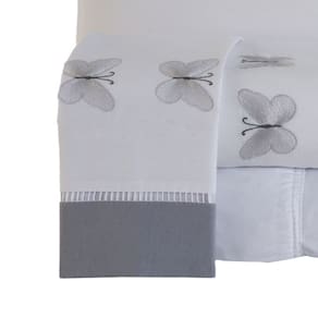O Jogo de lençol em tecido Percal 4 peças com detalhe Bordado na vira e na fronha, acabamento em Ponto Palito, com alto padrão de qualidade, proporciona conforto e sofisticação.