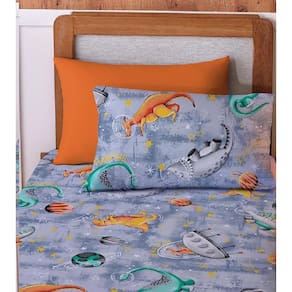 Jogo de Lencol Cama Solteiro Completo Malha Vivaldi Kids Dino Space Sul Brasil Fabricados em malha 100% algodão com fio penteado 30/1 e gramatura de 120g/m. Nosso lençol avulso com elástico liso junto com a fronha e o sobre lençol estampado são perfeitos para encantar a sua cama e seu quarto. O toque natural do algodão contribui para um tecido mais suave e prático, dando uma sensação agradável para te abraçar e envolver enquanto você dorme. Composição do Jogo: 01 Unidade Fronha Estampada 01 Unidade Lençol Solteiro Avulso Liso 01 Unidade Sobre Lençol Solteiro Avulso Estampado Tamanhos: Fronha: 50cm x 70cm Lençol: 88cm x 1,88m x 30cm Sobre Lençol: 1,60m x 2,20m Características: Fibra: 100% Algodão Fio: 30/1 Penteado Tecido: Malha Gramatura: 120g/m Instruções de Lavagem: Temperatura máxima de lavagem 40 C Não Alvejar Não secar em tambor Secagem em varal à sombra Temperatura máxima da base do ferro a 110 C sem vapor Não limpar a seco Limpeza a úmido Atenção: Não acompanha Edredom, Cobre Leito ou Acessórios demonstrados na foto. Devido a variação de modelos de monitores, as cores podem variar com a cor real do produto. Imagens meramente ilustrativas Marca: Não Informado Ean: 7900232900051