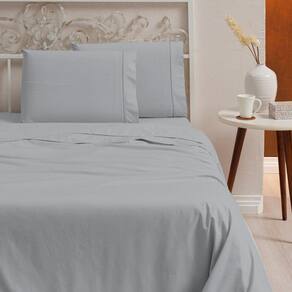 Jogo Lençol Casal 4 Peças 100% Algodão 400 Fios Cinza