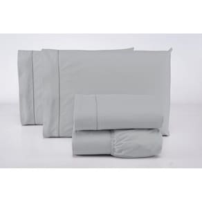 JOGO LENÇOL CASAL 4 PEÇAS 100% ALGODÃO 400 FIOS CINZA