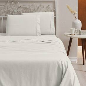 JOGO DE CAMA CLASSIC CASAL 4PÇS – 400 FIOS ALGODÃO Contém na Embalagem :Contém na Embalagem:01 Sobre Lençol 2,50m x 2,20m01 Lençol Ajustável 1,88m x 1,38m x 30cm (Com Elástico)02 Fronhas 70cm x 50cm Características: Detalhes em ponto palito na vira do lençol e fronhas Lençol de baixo possui elástico na volta toda Composição 100% Algodão