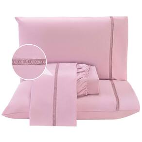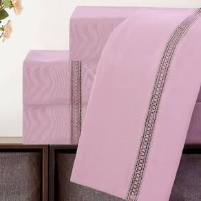 O Jogo de lençol para cama Casal Padrão com 04 peças confeccionado em tecido Percal 300 fios, detalhes em Guipir na fronha e no lençol de cima. Possui alto padrão de qualidade, proporciona conforto e sofisticação.