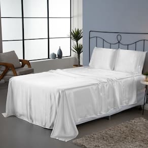 O Jogo de lençol para cama Casal padrão com 04 peças confeccionado em Cetim Charmousse. Possui alto padrão de qualidade, proporciona conforto e sofisticação.