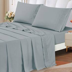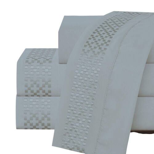 Jogo Lençol Casal Elegance Bordado 4pç 100% Poliéster - Cinza