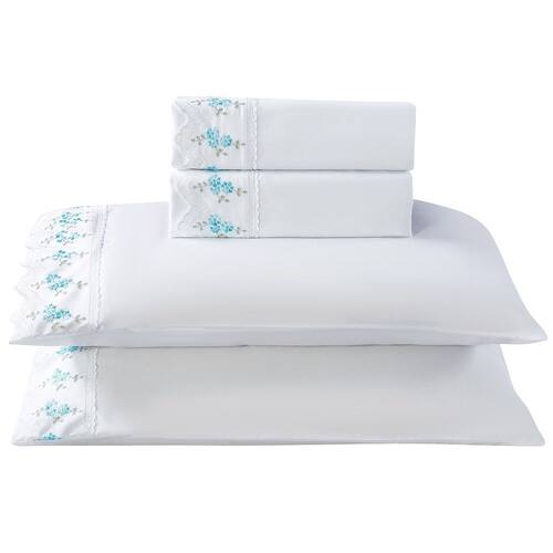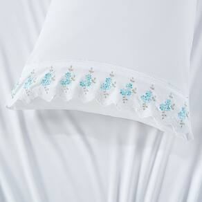 O Jogo de lençol para cama Casal Padrão com 04 peças confeccionado em tecido Percal 300 fios, vira do lençol de cima e fronha bordada. Possui alto padrão de qualidade, proporciona conforto e sofisticação.