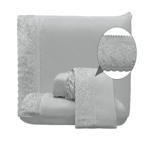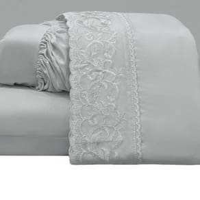 O Jogo de lençol para cama Casal Padrão com 04 peças confeccionado em tecido Percal 300 fios, detalhes em bordado inglês na fronha e no lençol de cima. Possui alto padrão de qualidade, proporciona conforto e sofisticação.