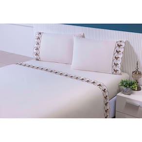 CONTÉM: 01 Lençol de baixo com elástico ao redor de todo o lençol para melhor fixação no colchão(não fica saindo da cama) Para colchão 1,88m x 1,38m x 30cm 01 Lençol de cima com barrado bordado 2,20m x2,50m 02 Fronhas 70cm x 50cm