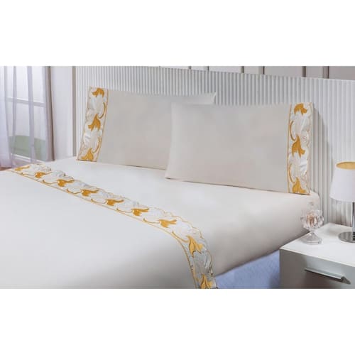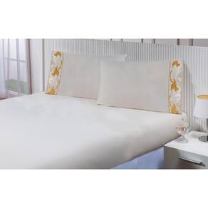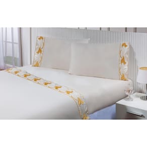 Jogo lençol casal padrão 1,88mx1,38mx30cm 4 peças 200 fios 100% algodão barrado bordado tulipa dourada Thais enxovais Jogo de lençol casal padrão 4 peças 100% algodão 200 fios com barrado bordado richilieu
