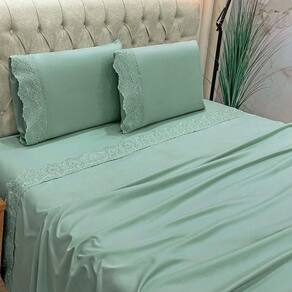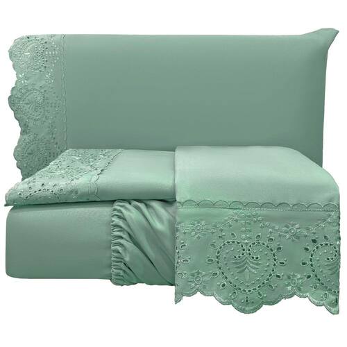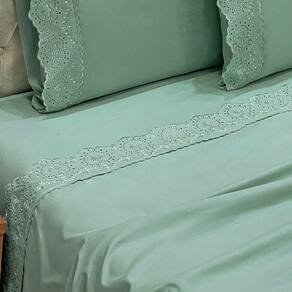 Jogo Lençol Casal Passione Bordado Inglês 4 pç Verde