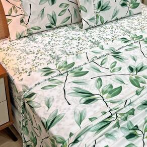 Jogo Lençol Casal Primor 4pç 100% Poliéster Flo_verd - Branco