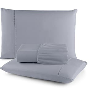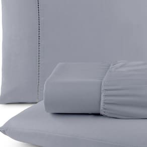 Jogo Lençol com Elástico Casal 3 peças Ponto Palito Micropercal 400 Fios - Cinza