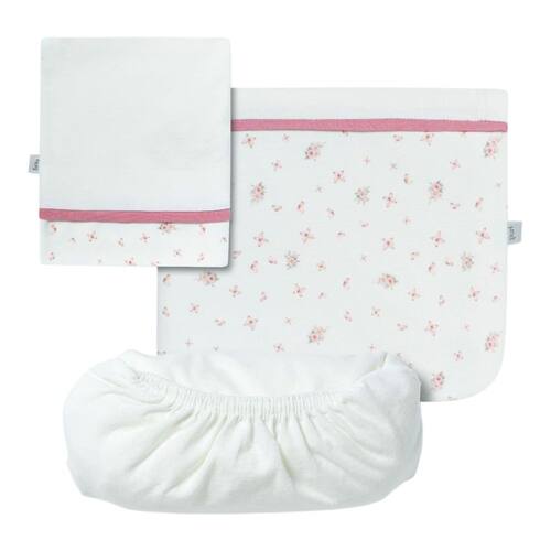 O Jogo de Lençol 3 peças Hug traz conforto e cuidado para o quartinho do bebê. O kit possui um lençol de elástico, uma fronha e um sobre lençol com vira em suedine estampado. Além disso, o sobre lençol é ótimo para cobrir o bebê. Indicado para berço padrão americano.