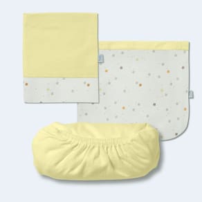Suedine 100% algodão. Cor: Amarelo Itens Inclusos: 1 Lençol com elástico 1 Fronha 1 Sobre lençol Modelo E20817 Marca: Hug POR QUE COMPRAR HUG? A Hug é uma fábrica brasileira de artigos infantis com mais de 10 anos de atuação no mercado. O processo de fabricação de todos nossos produtos são acompanhados por nossos especialistas com um rigoroso processo de qualidade. Nossos tecidos antialérgicos, macios e confortáveis são feitos para a pele delicada dos bebês. O resultado é um produto premium, durável e feito com muito carinho.