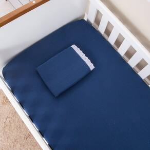 Jogo Lençol E Fronha Berço Americano 2 Peças Azul Marinho