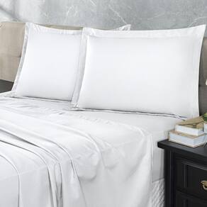 O acabamento em aba americana nas fronhas traz o charme perfeito para o lençol.