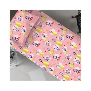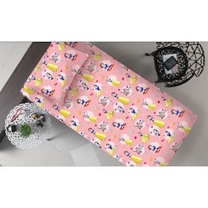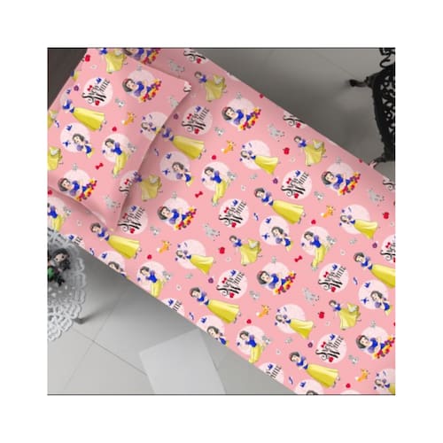 Composição: Fronha: Malha Estampada Branca de Neve 100% Algodão Lençol de Elástico: Malha Estampada Branca de Neve 70% Algodão / 30% Poliéster