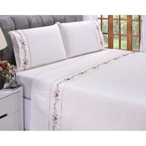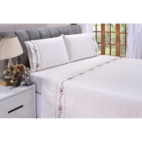 Produzido com tecido de alta qualidade sendo Percal 200 Fios no Tecido 100% Algodão com delicado Bordado nas peças transmitindo a sensação de conforto e proporciona proteção ao colchão fazendo da sua cama o melhor lugar para carregar as energias pois dormir é extremamente importante em nossa vida. Fazendo de sua casa um verdadeiro lar !