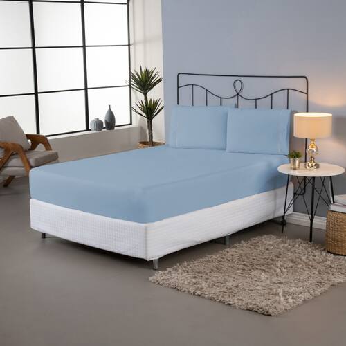 Jogo Lençol King 3 Pçs Percal 140 Fios Liso Ponto Palito - Verde