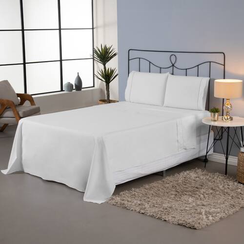 Jogo de Lençol King 4 Pçs Percal 140 Fios Liso Ponto Palito - Detalhe ponto palito nas fronhas e ótimo tamanho de transpasse, evitando que fique saindo do travesseiro; - Jogo de lençol completo, acompanha lençol de cima (virol), podendo usar para se cobrir; - Elástico em volta de todo o lençol debaixo; - Ideal para compor a decoração do quarto, podendo facilmente combinar. A coleção Ponto Palito irá transformar suas noites de sono. O produto é perfeito para quem procura sofisticação sem abrir mão de um bom clássico. Perfeito para complementar suas composições, sejam elas básicas ou cheia de personalidade. Confeccionado em percal 140 fios, o lençol garante toque fresco, resistência e praticidade para completar seu dia dia e noites de sono. CONTÉM NA EMBALAGEM: 01 Lençol sem elástico (virol/de cima) 01 Lençol com elástico 02 Fronhas TAMANHOS/MEDIDAS Lençol sem elástico: 2,85m comp. x 2,80m larg. Lençol com elástico: 2,03m comp. x 1,93m larg. x 40cm alt. Fronhas: 70cm comp. x 50cm larg. COMPOSIÇÃO: Tecido 80% algodão / 20% poliéster - percal 140 fios. ATENÇÃO! A TONALIDADE DA COR PODE VARIAR DE ACORDO COM CADA TELA DE DISPOSITIVO. Marca: Grande Enxovais Marca: Grande Enxovais