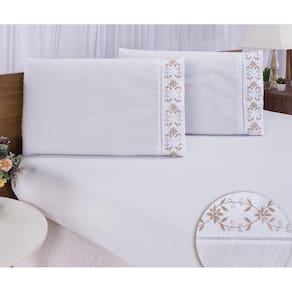 JOGO DE LENÇOL CASAL KING BORDADO 3 PEÇAS