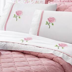 O Jogo de lençol em Percal 4 peças com detalhe Bordado na vira e na fronha. Acabamento em bordado inglês com alto padrão de qualidade, proporciona conforto e sofisticação.