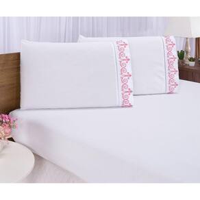 Jogo lençol quarto casal king bordado 3 peças branco rose