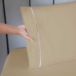 Jogo de Lençol Queen 4 Pçs Percal 140 Fios Liso Ponto Palito - Detalhe ponto palito nas fronhas e ótimo tamanho de transpasse, evitando que fique saindo do travesseiro; - Jogo de lençol completo, acompanha lençol de cima (virol), podendo usar para se cobrir; - Elástico em volta de todo o lençol debaixo; - Ideal para compor a decoração do quarto, podendo facilmente combinar. A coleção Ponto Palito irá transformar suas noites de sono. O produto é perfeito para quem procura sofisticação sem abrir mão de um bom clássico. Perfeito para complementar suas composições, sejam elas básicas ou cheia de personalidade. Confeccionado em percal 140 fios, o lençol garante toque fresco, resistência e praticidade para completar seu dia dia e noites de sono. CONTÉM NA EMBALAGEM: 01 Lençol sem elástico (virol/de cima) 01 Lençol com elástico 02 Fronhas TAMANHOS/MEDIDAS Lençol sem elástico: 2,50m comp. x 2,40m larg. Lençol com elástico: 1,98m comp. x 1,58m larg. x 40cm alt. Fronhas: 70cm comp. x 50cm larg. COMPOSIÇÃO: Tecido 80% algodão / 20% poliéster - percal 140 fios. ATENÇÃO! A TONALIDADE DA COR PODE VARIAR DE ACORDO COM CADA TELA DE DISPOSITIVO. Marca: Grande Enxovais Marca: Grande Enxovais