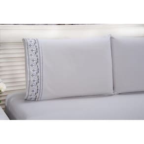 Jogo lençol Queen bordado 3 peças cinza tulipa quarto casal