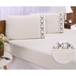 JOGO DE LENÇOL CASAL QUEEN BORDADO 3 PEÇAS