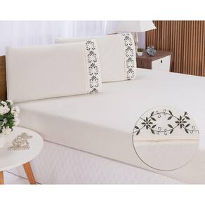 JOGO DE LENÇOL CASAL QUEEN BORDADO 3 PEÇAS