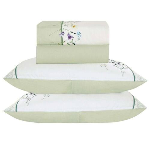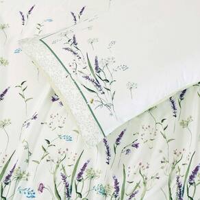 O Jogo de lençol para cama Queen com 04 peças confeccionado em tecido Percal 300 fios, estampa floral na fronha e no lençol de cima. Possui alto padrão de qualidade, proporciona conforto e sofisticação.