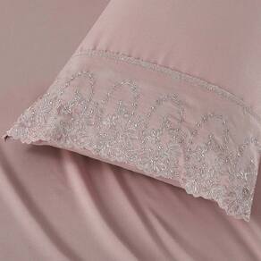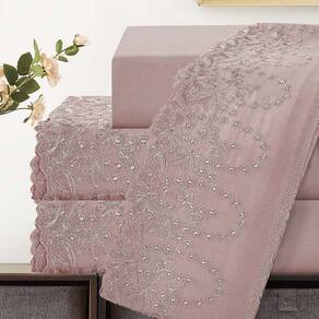 O Jogo de lençol para cama Queen com 04 peças confeccionado em tecido Percal 300 fios, detalhes em bordado inglês na fronha e no lençol de cima. Possui alto padrão de qualidade, proporciona conforto e sofisticação.