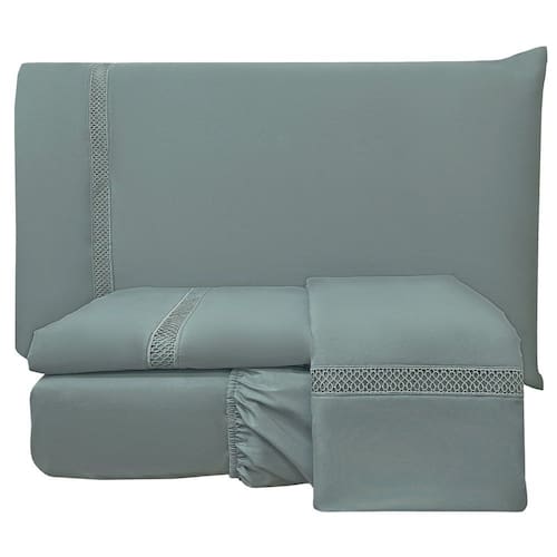 O Jogo de lençol para cama Queen com 04 peças confeccionado em tecido Micropercal 200 fios, detalhes em Ponto Infinito na fronha e no lençol de cima. Possui alto padrão de qualidade, proporciona conforto e sofisticação.