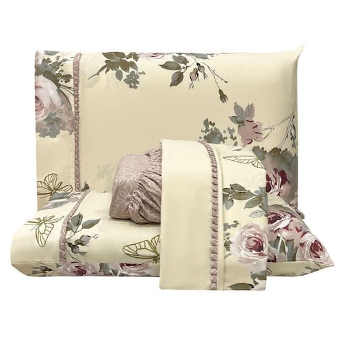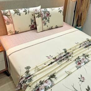 O Jogo de lençol para cama Queen com 04 peças confeccionado em tecido Percal 300 fios em estampas florais suaves e delicadas. Possui alto padrão de qualidade, proporciona conforto e sofisticação.