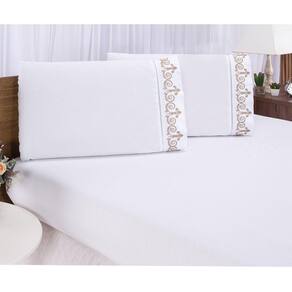 Jogo lençol queen quarto casal bordado 3 peças branco caqui - Cáqui