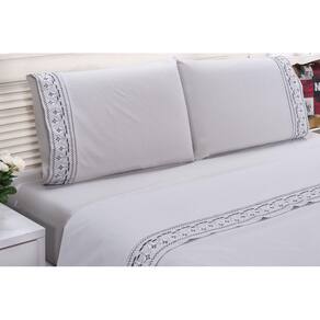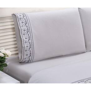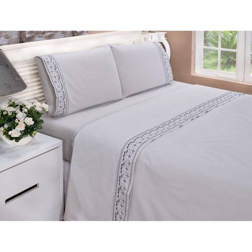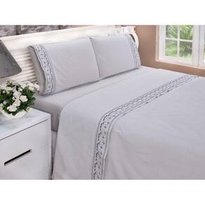 Jogo lençol Tulipa quarto casal Padrão bordado 4 peças 2fronha - Cinza