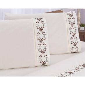 Jogo lençol Veneza quarto casal Padrão bordado 4 peças 2fronha - Palha