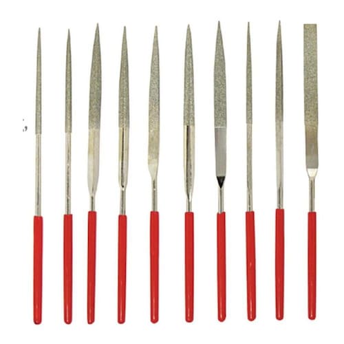 O Kit Jogo Lima Agulha Diamantada Relojoeiro Ourives 10 Peças é a ferramenta ideal para profissionais que trabalham com rebarbas, joalheria, ótica e muito mais. Composto por 10 limas agulha de alta qualidade, este kit foi projetado para ser durável e fácil de usar.