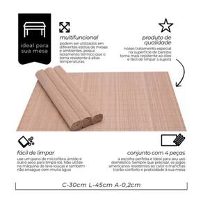 MULTIFUNCIONAIS: Pode ser utilizado em diferentes estilos de mesas e ambientes, o bambu possui isolamento térmico, por isso também pode ser usado na construção de jogos americanos por possuir muita resistência ao calor e à manchas