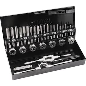 Material: Machos e cossinetes: Aço rápido (HSS) / Desandador para machos e porta cossinetes: Aço especial / Chave de fenda: Aço cromo vanádio.